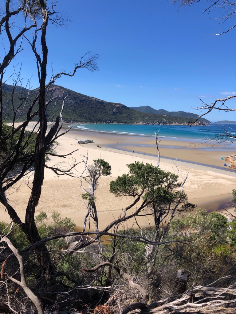 As the Victorian restrictions eased and the weather was warming up, we decided to explore our own backyard. A double swag was bought and loaded into the Camry and first off we headed to Wilsons Promontory. I hadn’t been here for years and am kicking myself for not returning earlier as it’s only 90 minutes from where we live. The ocean is a vivid blue and several long bushwalking tracks were explored. We both enjoyed a swim after one of those walks. The swag was a success! It was such a mild night, We slept with only the netting zipped up. I lay there staring at such an amazing starlit sky as well as listening to the waves lapping the shoreline. Ruthie wasn’t impressed with my packing skills on our first camping foray. I had forgotten a few of the essentials such as the toolbox and torches. Luckily I only had to drive the tent pegs into sand and the moonlit night gave us enough light.