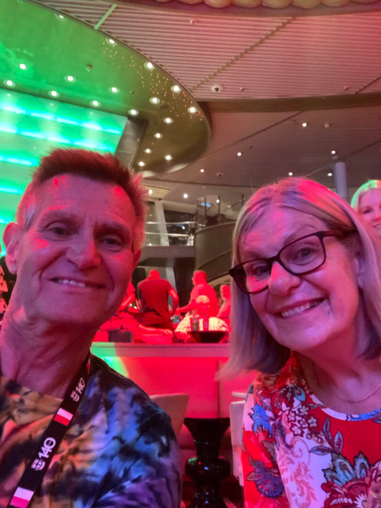 The next morning, after a late night, we were told the captain would make an announcement about the previous nights events. Ruthie had joined a group of ladies for a slot pull in the casino. I went to check on their progress when Ruthie handed me her phone, it was my daughter Paige. As soon as I said hello, she said Dad and started crying, it started my blubbering. Here I was in the middle of the casino crying like a child, tears streaming down my face. I think the crowd around me read the room. I hadn’t thought about the news reaching Australia before we had confirmation. An Australian man had gone overboard. There is too much love in my life for that to happen to me.