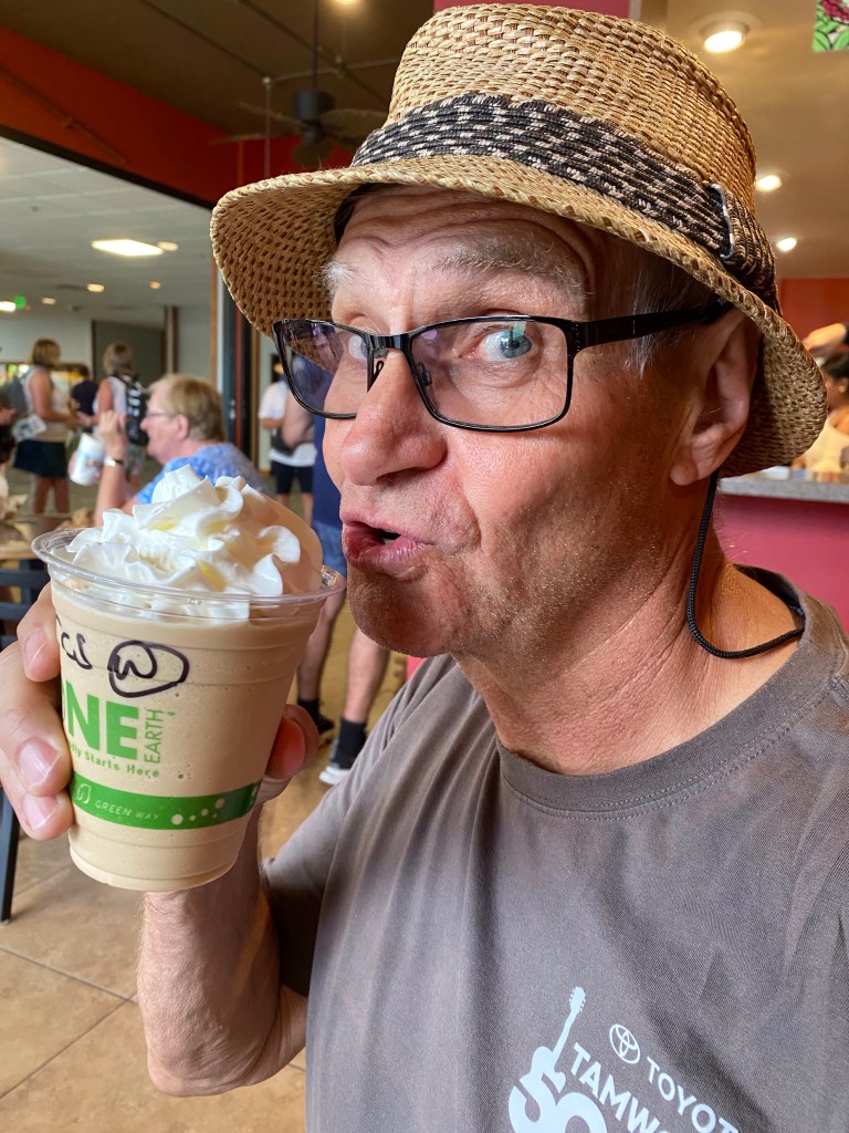 Kailua Kona on the Big Island was our first Hawaiian stop. We had been here before and opted to take the trolley bus around the town to see the sights. Once off the trolley, we found a coffee shop that offered free wifi. The wifi was crap but the caramel coffee frappé was sensational! Luckily the hotel that the shop adjoined had really fast unlocked wifi and we happily caught up with family and friends back home.