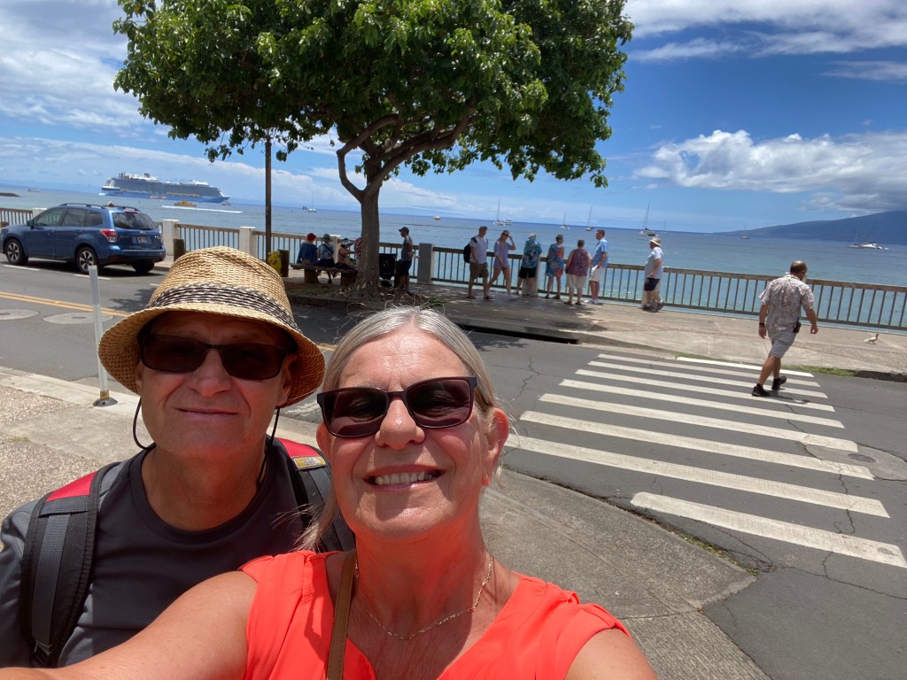 Our first stop on our Honolulu to Vancouver leg was the beautiful island of Maui. We’ve also been here before and have done the road to Hana as well as snorkelling the Molinkini crater. We tendered to the shore and had a yummy pineapple waffle cone ice cream as well as trying the famous Kona coffee and yes, some more shopping. We had a beer at Fleetwoods on Front Street which is a Mick Fleetwood owned bar and restaurant. I didn’t realise he would be there personally but some other passengers had a selfie with him. Just off the pier is a spectacularly huge banyan tree which has 16 separate trunk offshoots into the ground creating 16 more banyan trees, all joined from the main tree. The main tree is over 60 feet tall and the whole configuration covers just under 1 acre, creating a natural covered outdoor theatre over 150 years old. Before we headed back to the ship we enjoyed a cooling beach swim.