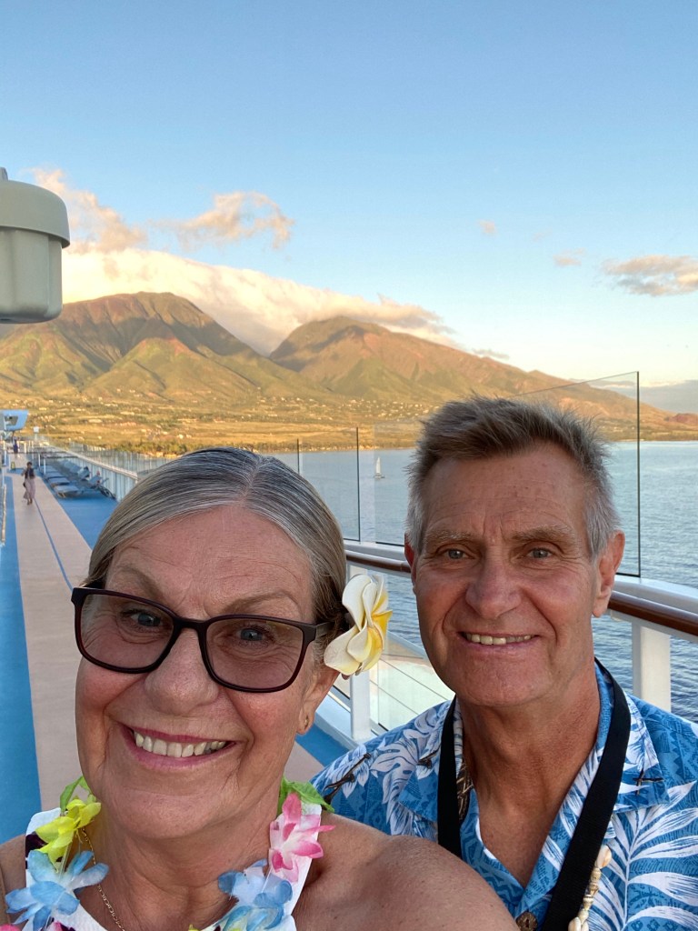We have really noticed the change in dynamics and vibe on the ship going from a largely Australian passenger based cruise to a largely American, Canadian and Asian based cruise. There are no longer queues at the bars but you can’t get near the pizza for supper. Suddenly a lot more rule signs have appeared which says a lot! The prizes being given out they call drink Koozies. Us Aussies call them a stubby holder but for ever more they’ll be known as Koozies to us. Our cruise director, Mike has stopped saying g’day and hoo roo. We even got prime seats to the Maui under the moon party. We struggled to get seats to events like this on the previous leg.