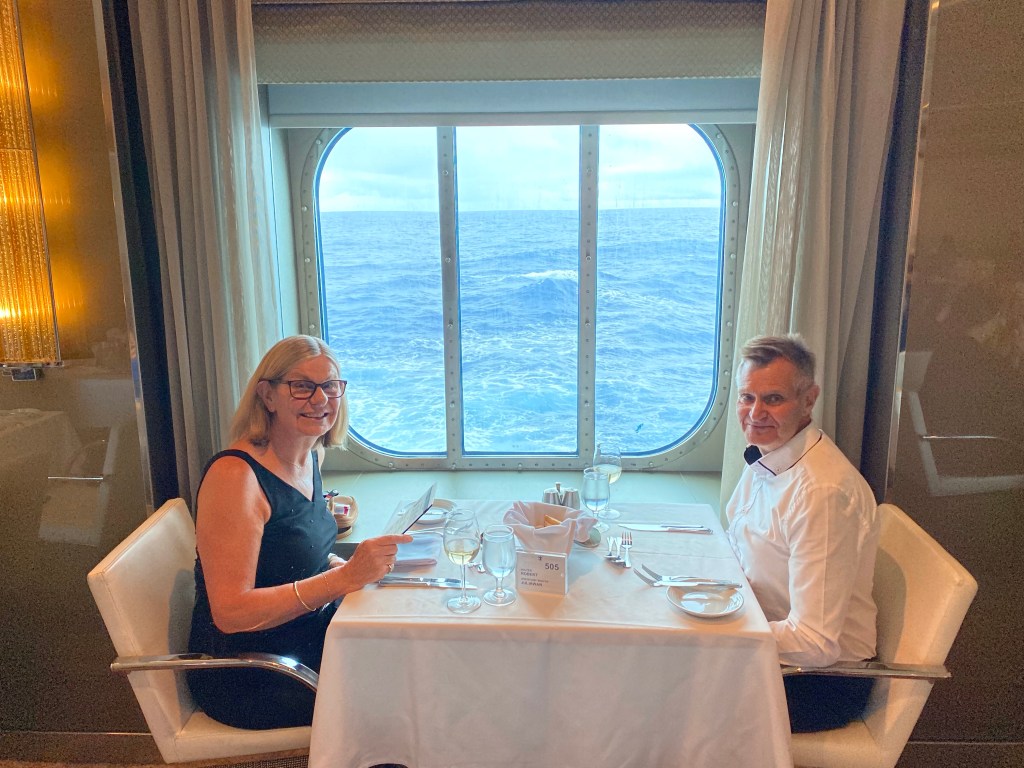 Our dinner table on this cruise was by a large window watching the sunset and was the envy of a lot of other passengers. One night we were lucky to see the largest pod of dolphins we have ever seen. We offered to sell seats at the table to highest bidder. When asked if we would like this table for the Alaskan leg of the cruise, we jumped at the opportunity.