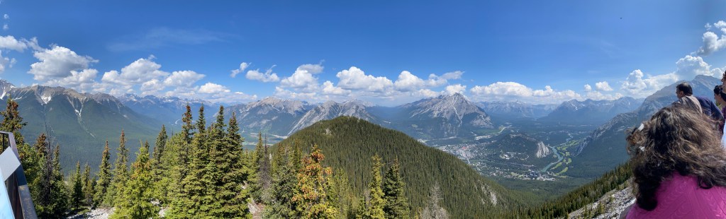 One of the most popular tourist attractions in Banff is the gondola up Sulphur Mountain. It didn’t disappoint. The 360 degree views of 6 mountain ranges were amazing no matter which way you turned. We hiked further and higher along the boardwalk to the old weather station which is the highest point. Being the supreme athletes we are haha, we certainly noticed the thinner air at higher altitude.