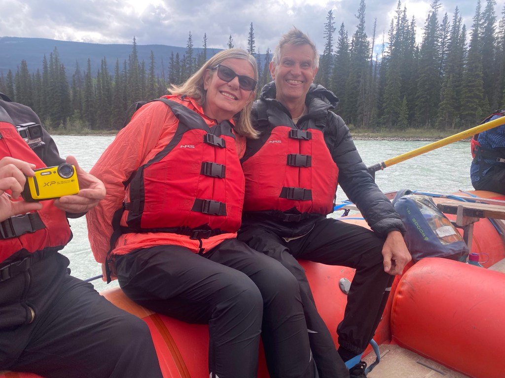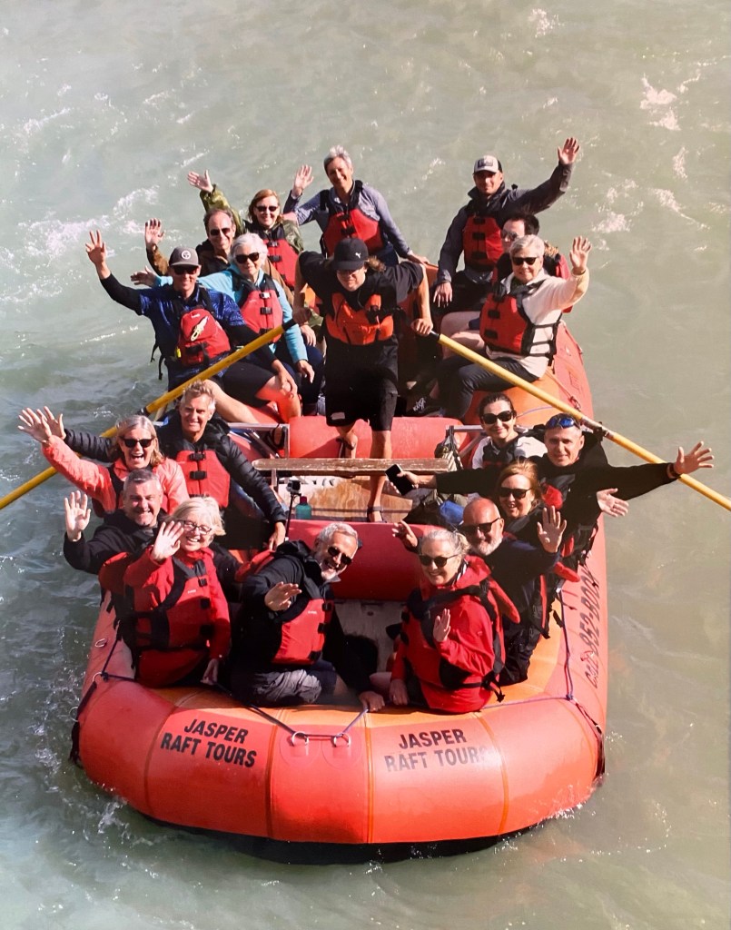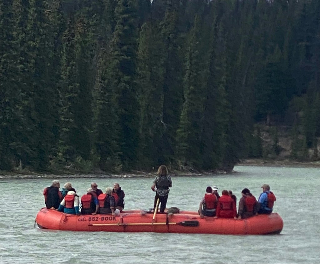 It had been an early start and a long day but there was more to come. A raft float down the Athabascan river was next. We were told we may get a wet bum. I think they lied! It was only grade 2 rapids but with 17 of us sitting around the edge of the raft, the skipper certainly found enough splash to get all of us soaked. He said it was just a smooch from the river and how could we be mad with the river? No one minded. It was so exhilarating (and freezing cold) yet peaceful at the same time as we took time to soak in the surroundings. The bus picked us up at the other end of our raft float and dropped us at our hotel in Jasper.