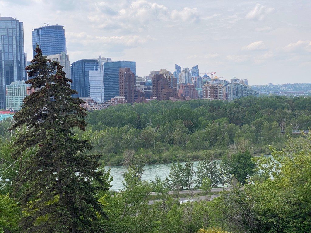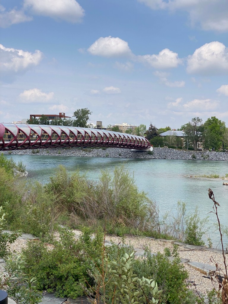 We still had a day to kill before the start of our overland Rocky Mountains bus tour. The Bow River in Calgary gets it water from the Bow glacier all the way from North Lake Louise. It’s prone to flooding and in parts it’s so rough that you can actually surf it. So we enjoyed a long walk along it followed by coffee on Prince’s Island which was in the middle of the river. There were so many people out walking and jogging along the river path that I was beginning to wonder if anyone worked in this town. The average age of the population in Calgary is 37, really young, which explains all the condominiums and joggers. Another walk down Stephen Avenue to our favourite bar for happy hour and the day was just about done.