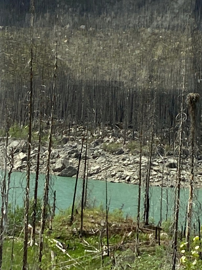 Another day of mountains, rivers, forests and wildlife. There is definitely no shortage of water in this part of Canada as there are rivers and lakes every which way you turn. Also no shortage of firewood from those dense forests. It really is a spectacular place. There is a song by the Arrogant Worms which sums up Canada. It is called Rocks and Trees and they throw in water for good measure.
