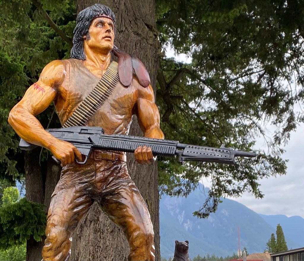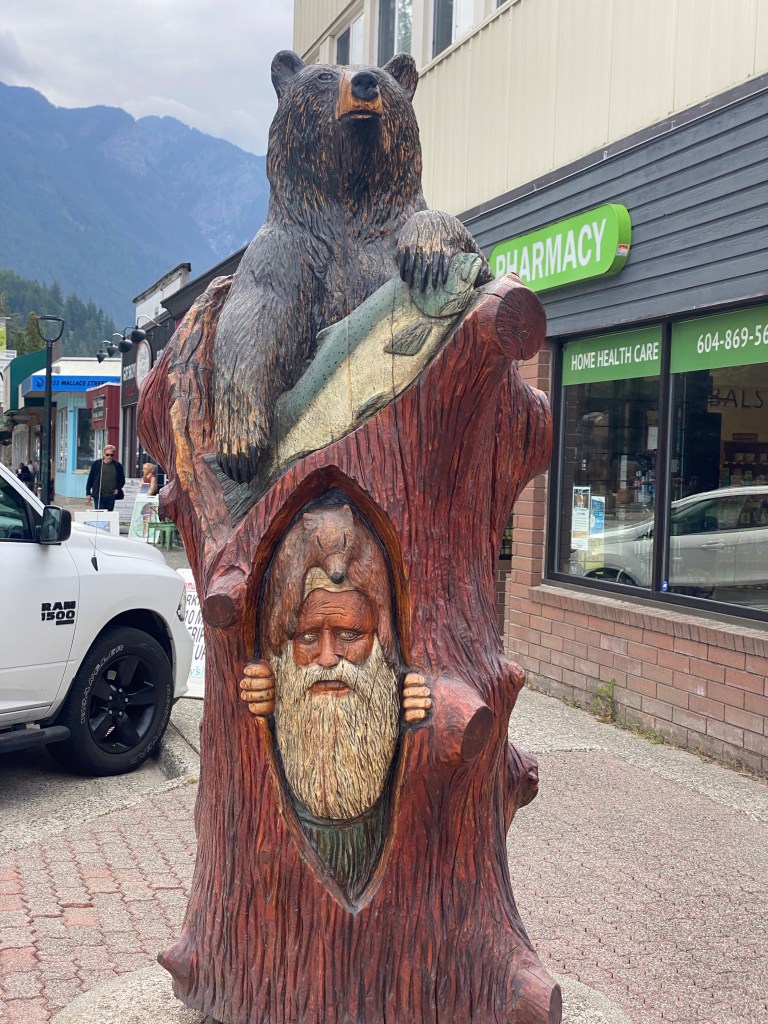 Early the next day we hit the Coquihalla Highway through the mountains to the ferry port in Tsawwasen. Along the way we had a rest break in a very friendly town called Hope. It reminded of a small country town in Australia. Chainsaw woodcarving is very popular here. Rambo – First Blood was filmed here.