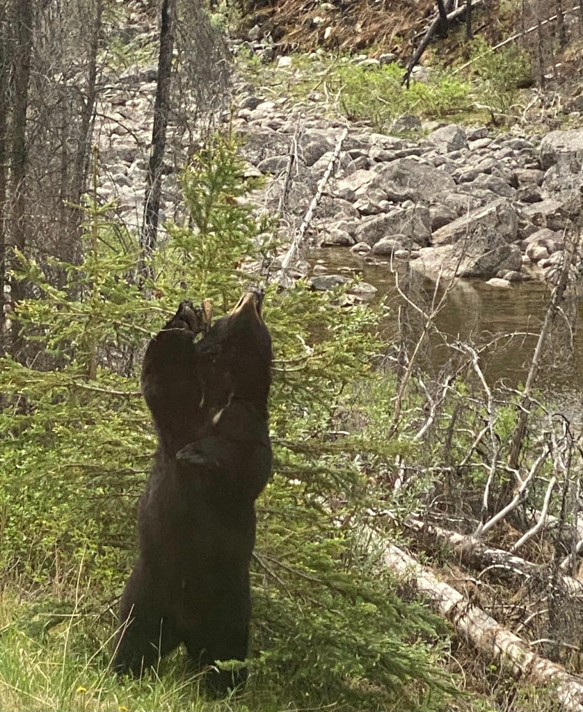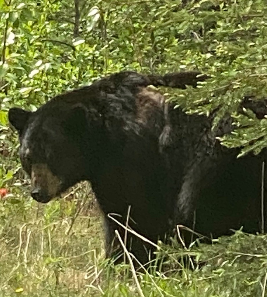 Back on the bus a black bear was spotted very close to the road and put on a show for us. It was scratching its back on a bush and actually stood up to reach the upper branches for berries. Apparently you don’t see a stripteasing dancing bear every day. The bus crowd were ecstatic!