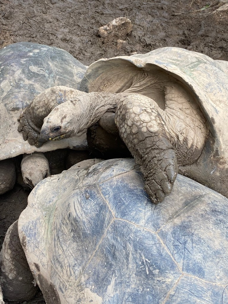 Besides all the flora and fauna there were some giants living here also. Ruthie loves a good tortoise and the Giant Seychelles tortoises did not disappoint. I had to drag her away. The adults were huge, they can grow up to 4 feet long and can live over 100 years, then came the 5-10 year olds (probably the size of a green sea turtle) then the teenagers which were bigger again.