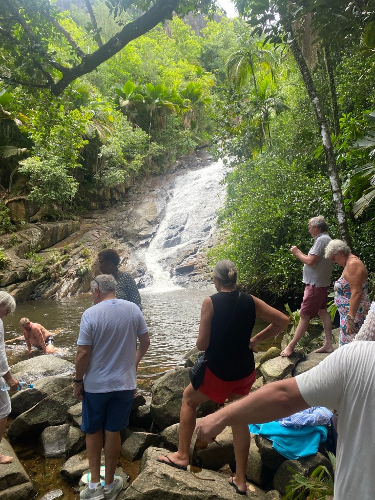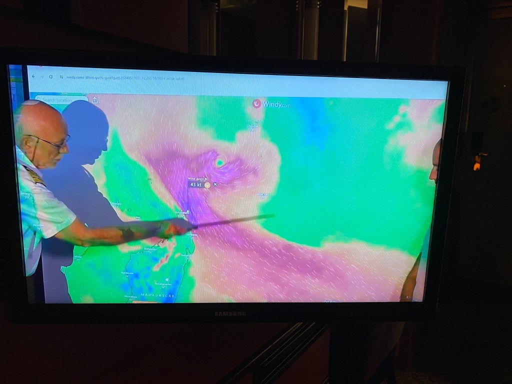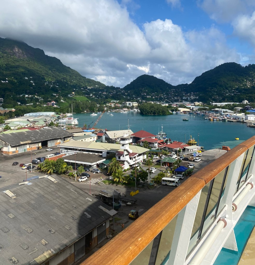 We had an eventful day on board. First our next stop in the Seychelles was meant to be a tender spot to La Digue Island. We had planned to hire bikes, swim and snorkel at their beautiful beaches. Unfortunately, the weather gods weren’t on our side and the stop was cancelled. Then there was a fire onboard in a cabin but that was controlled very quickly. And thirdly, not only was La Digue cancelled due to weather but a cyclone forming off the coast of Madagascar prevented us getting there too. Ruthie was disappointed but so were the grandchildren who were very excited for us when we originally told them we were going to Madagascar!