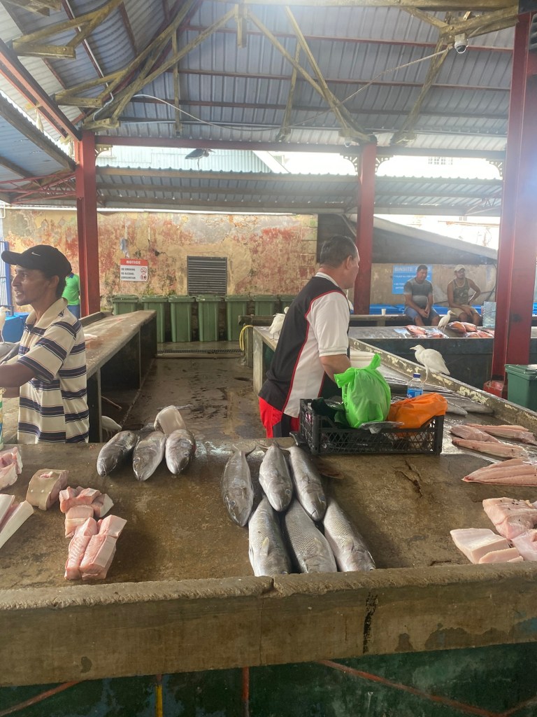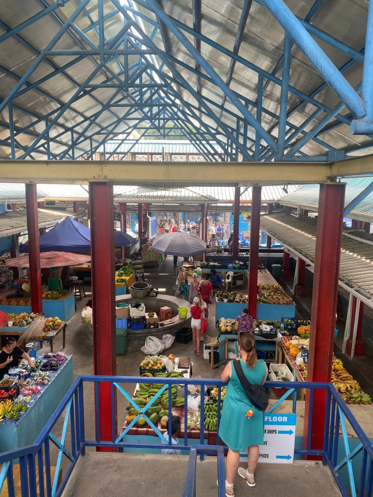 We’re on an organised bus tour of the island and the city is our first stop. A walk through the Sir Selwyn-Clarke market highlighted the fresh fish (competing with the flies and birds), fruit and vegetables and the wonderful aroma of fresh spices wafting through. Our guide told us that the market is a social meeting place for the locals as well.