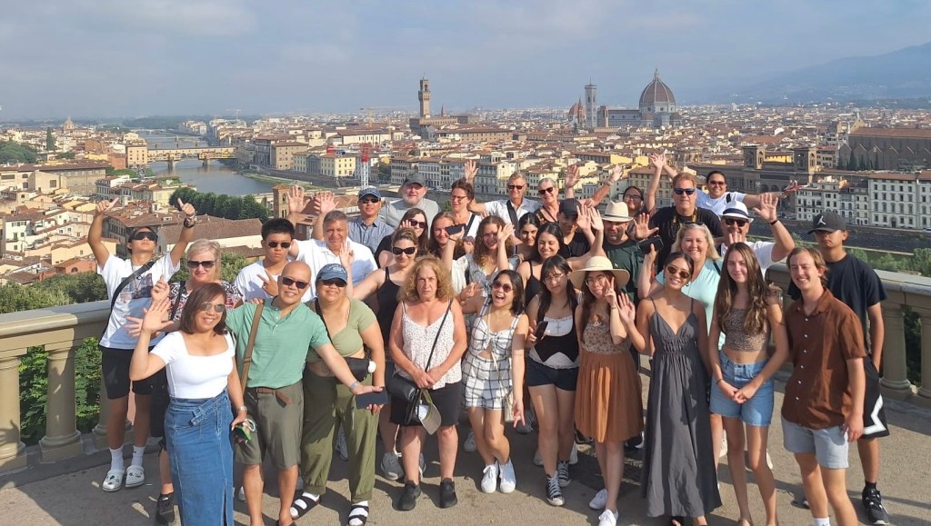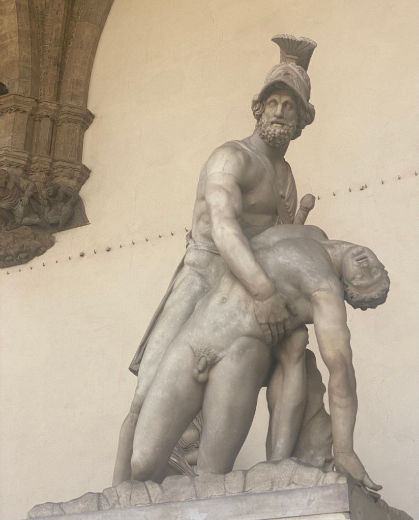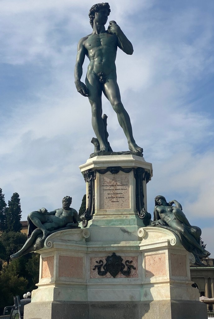 Our bus took us to a high point to overlook the city of Florence. Even from there, you could tell that Florence was and is a grand city. We got our first view of an imitation David statue while there. It was just the start of a lot of naked men statues scattered around Florence.