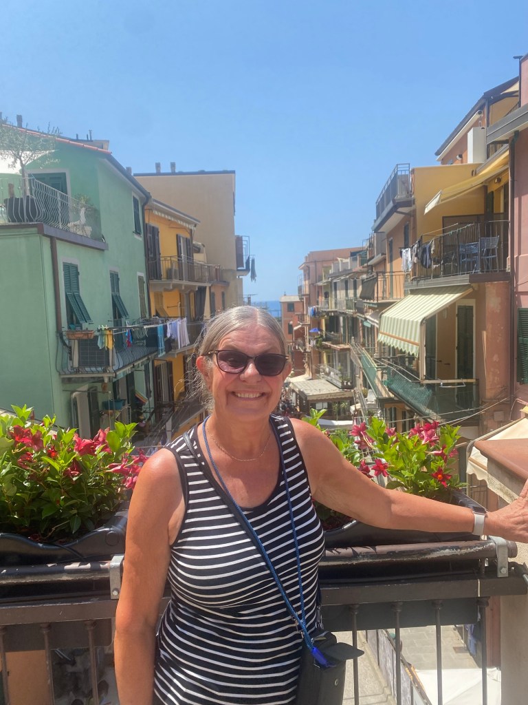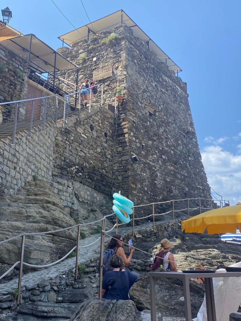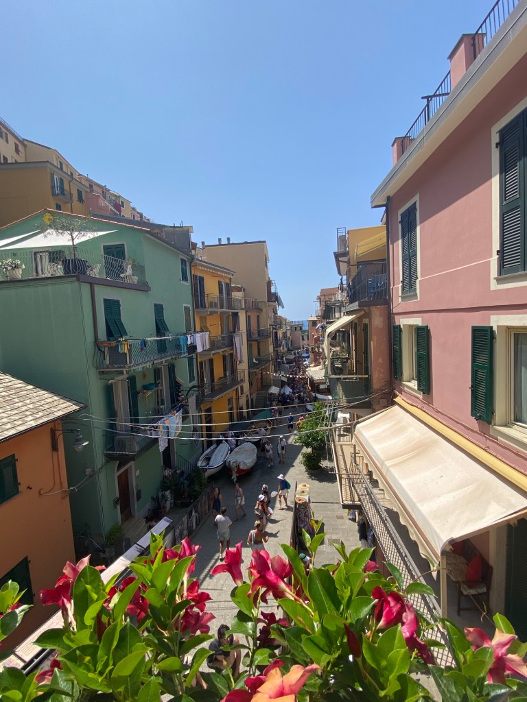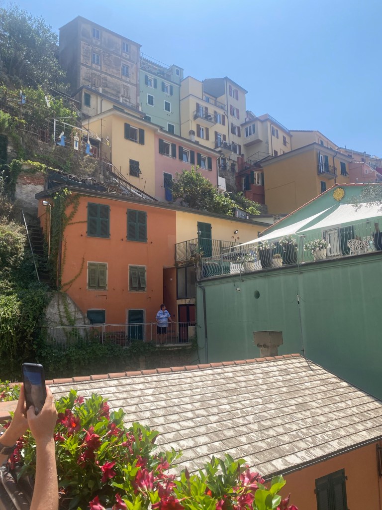 If I ever returned I would only go to Riomaggiore and Manarola. Both had beautiful ocean swimming areas which differentiated them from the other. Otherwise the towns look much the same with colourful houses and eateries. The food is the same in all the villages. We had some yummy pesto pizza slices for lunch sitting on a step in the shade.