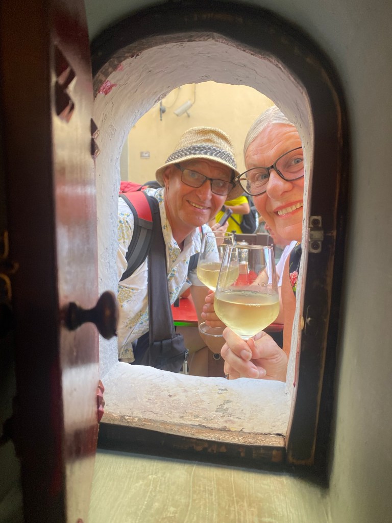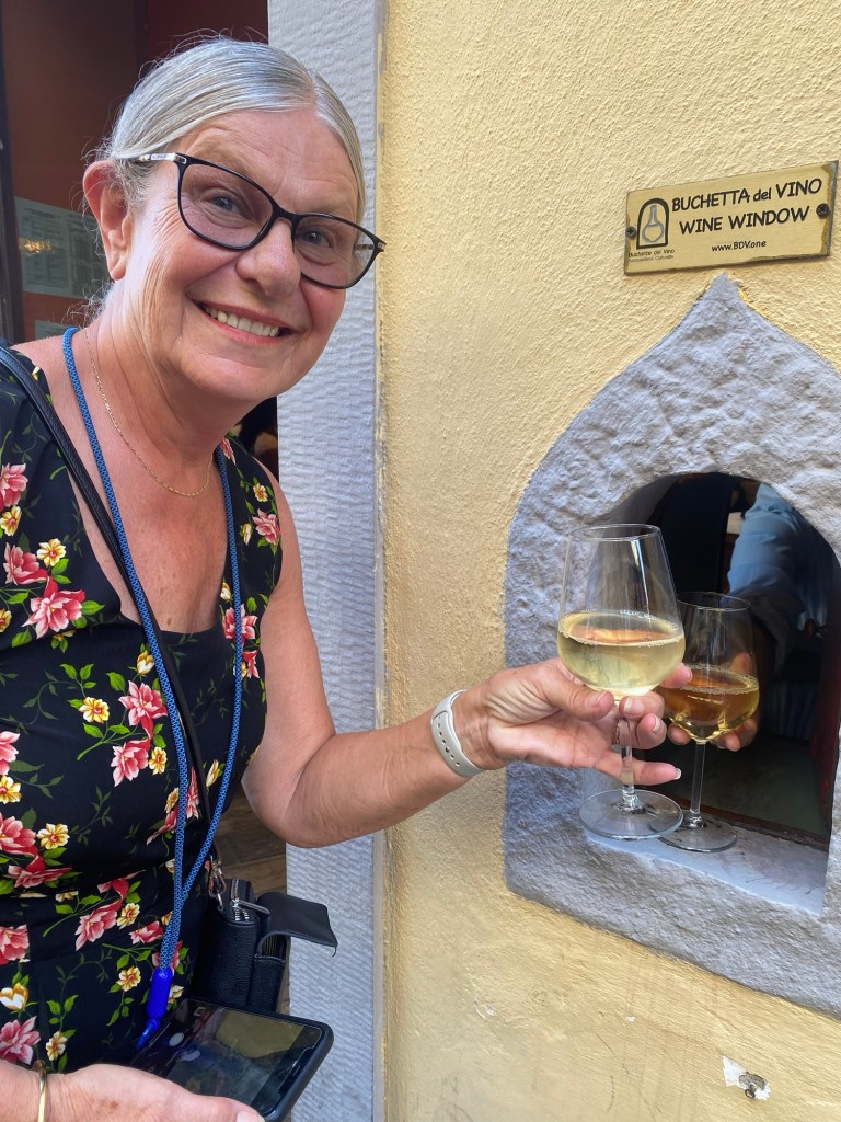 It was also novel that we could order a glass of wine from a wine window (Buchette del vino) which was just a little cutout in a wall which existed from centuries ago. Families used them to sell wine thus avoiding having to set up a shop and pay tax. They were also an anti-contagion way of selling wine during epidemics like the Black Plague in the 1600’s. In fact a lot of Restaurants, Bars and Gelateria began reusing them during the Covid pandemic just like years ago.