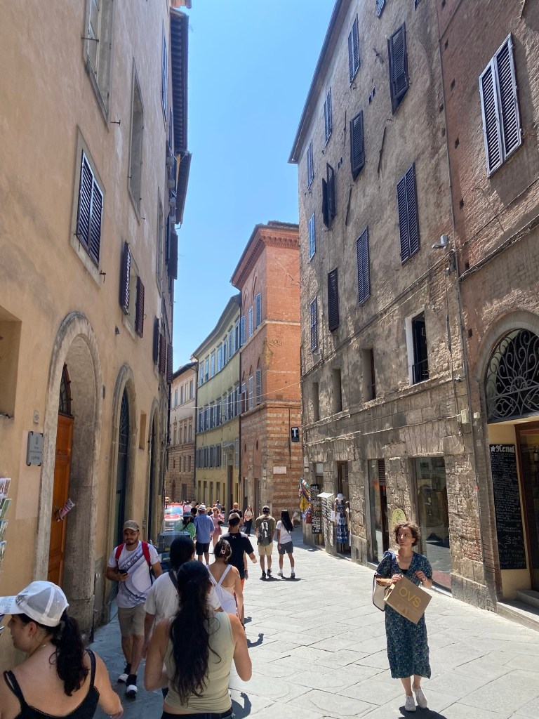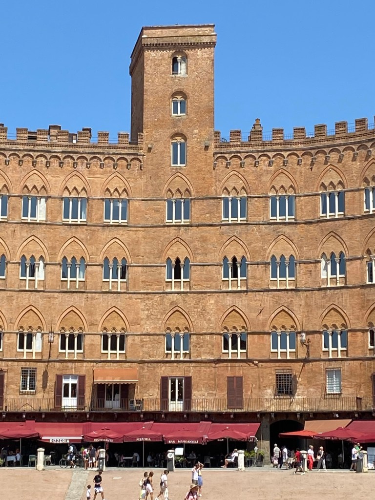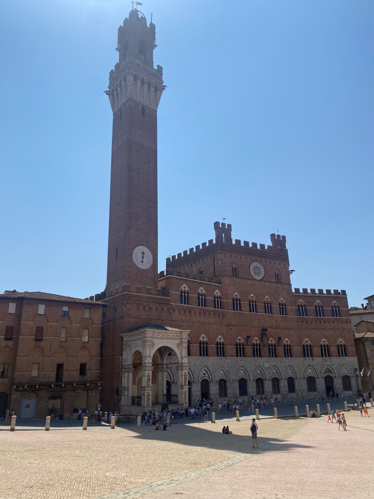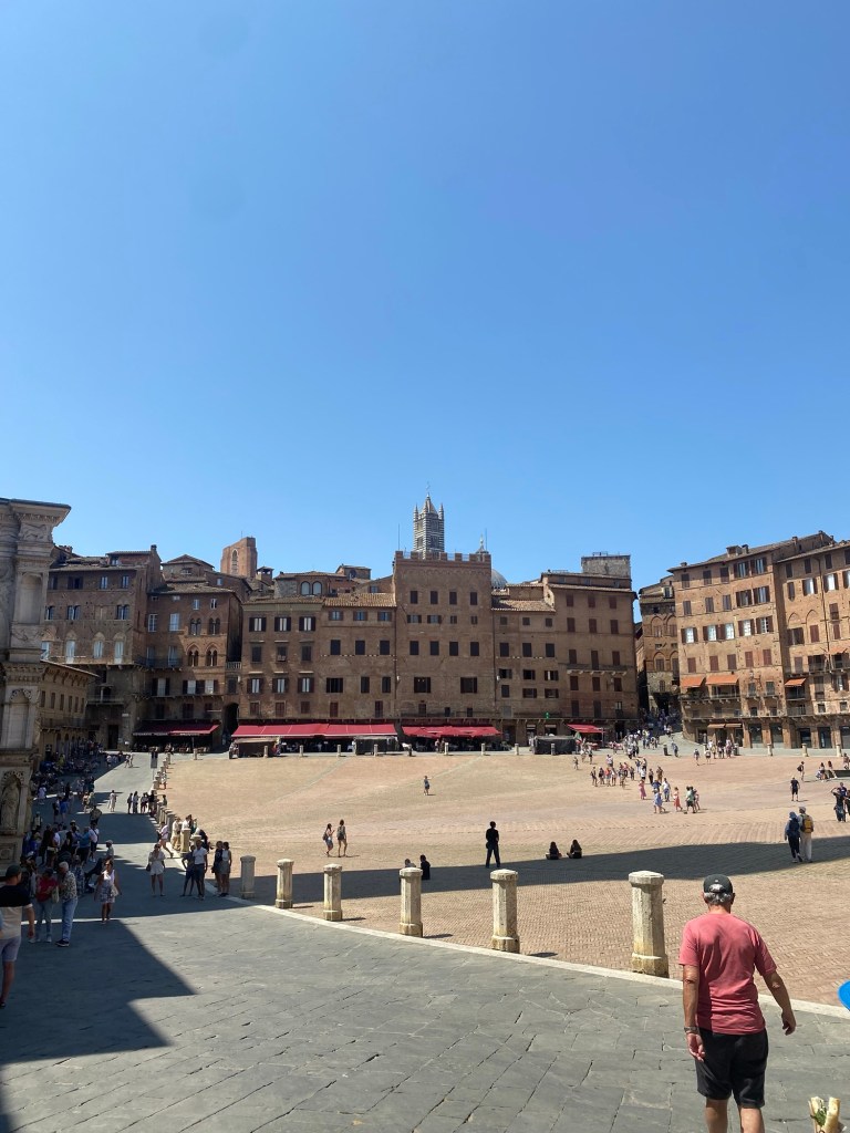 Our next stop was Sienna. We were taken to a huge city square. It is here that the famous Palio di Siena takes place twice a year. It is a horse race between all the rival neighbourhoods. The winners are very proud of winning but I’m sure the animal libbers wouldn’t approve.