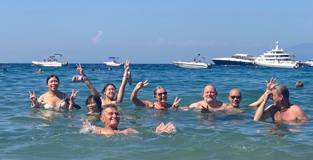 We’ve had amazing experiences in Italy too. Sitting in impossibly cramped Ristorante’s or even on a step in the shade with a take away pizza slice and an Aperol Spritz, watching the elegantly dressed Italians not even aware of how elegant they look. We’ve explored crazy cobblestoned streets with Trattorias next to centuries old buildings. If only the beautiful battered wooden doors that have been the entrance to homes for generations of Italians could talk. The churches, museums and Basilicas take your breath away. The olive trees, Sunflowers and lemon trees are spectacular. The coffee bars are great but we learnt it’s a sin to order a Cappuccino after 11am. We grew to love the evening walk where the Italians take a leisurely stroll arm in arm called “the Passeggiata”. Makes such sense as it’s so hot during the day. More friendships were formed on our bus tour. Oh and there’s always room for Gelato. Italy is always a good idea!